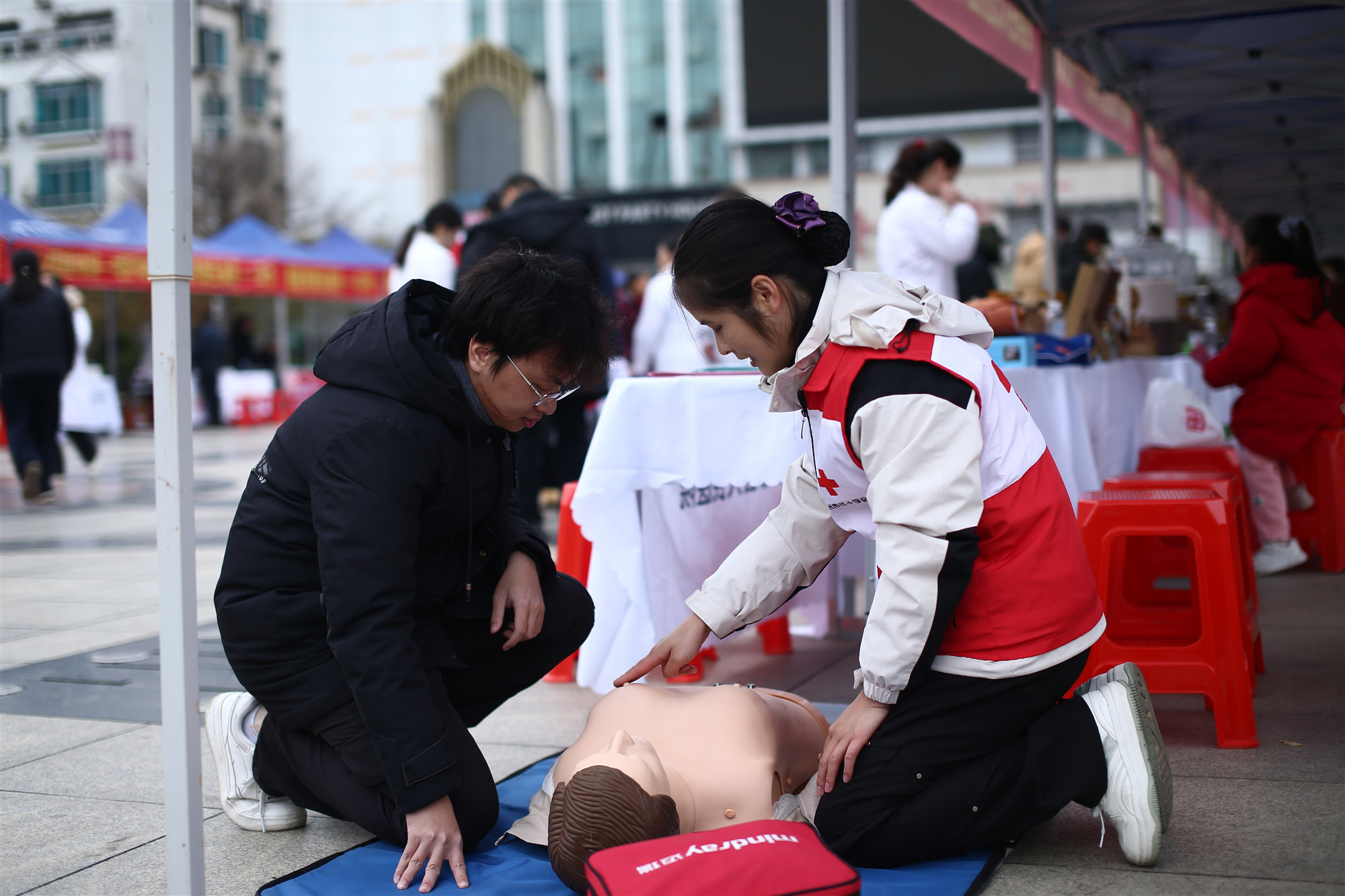 活动中,红十字志愿者通过设立咨询摊点、现场讲解等方式,向参与活动的群众普及了应急救护、海姆立克急救法等知识,并借助人体模型,志愿者们充分发挥专业优势,逐一演示心肺复苏、海姆立克急救法的规范操作,强调按压深度、频率等核心细节。在实操练习环节,志愿者一对一指导参与者进行模拟训练,及时纠正操作中的偏差,确保动作规范、精准到位。
